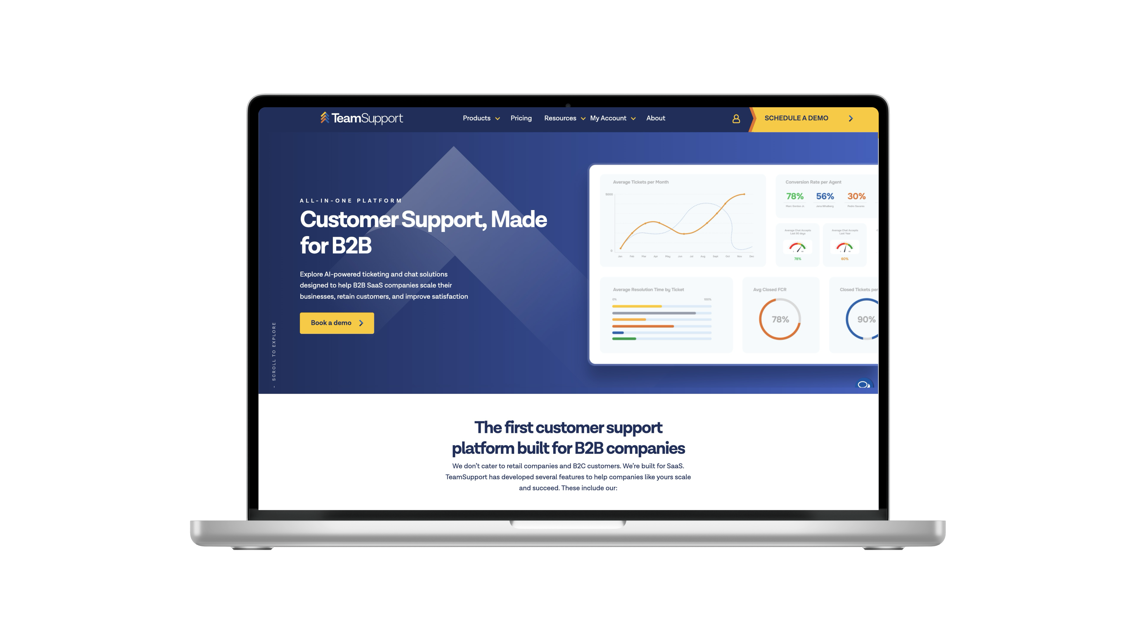 • Streamlined TeamSupport’s tech stack, transitioning their website hosting from HubSpot to WordPress and consolidating forms and conversion points.